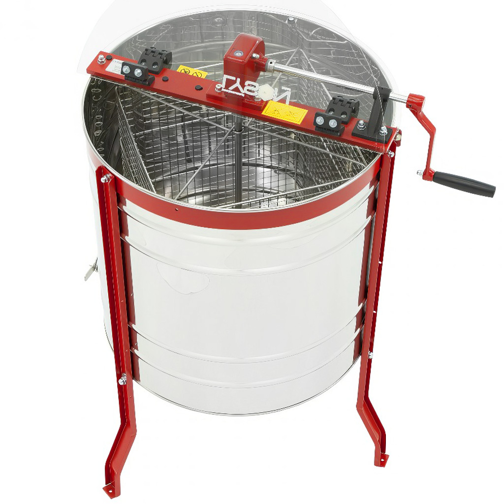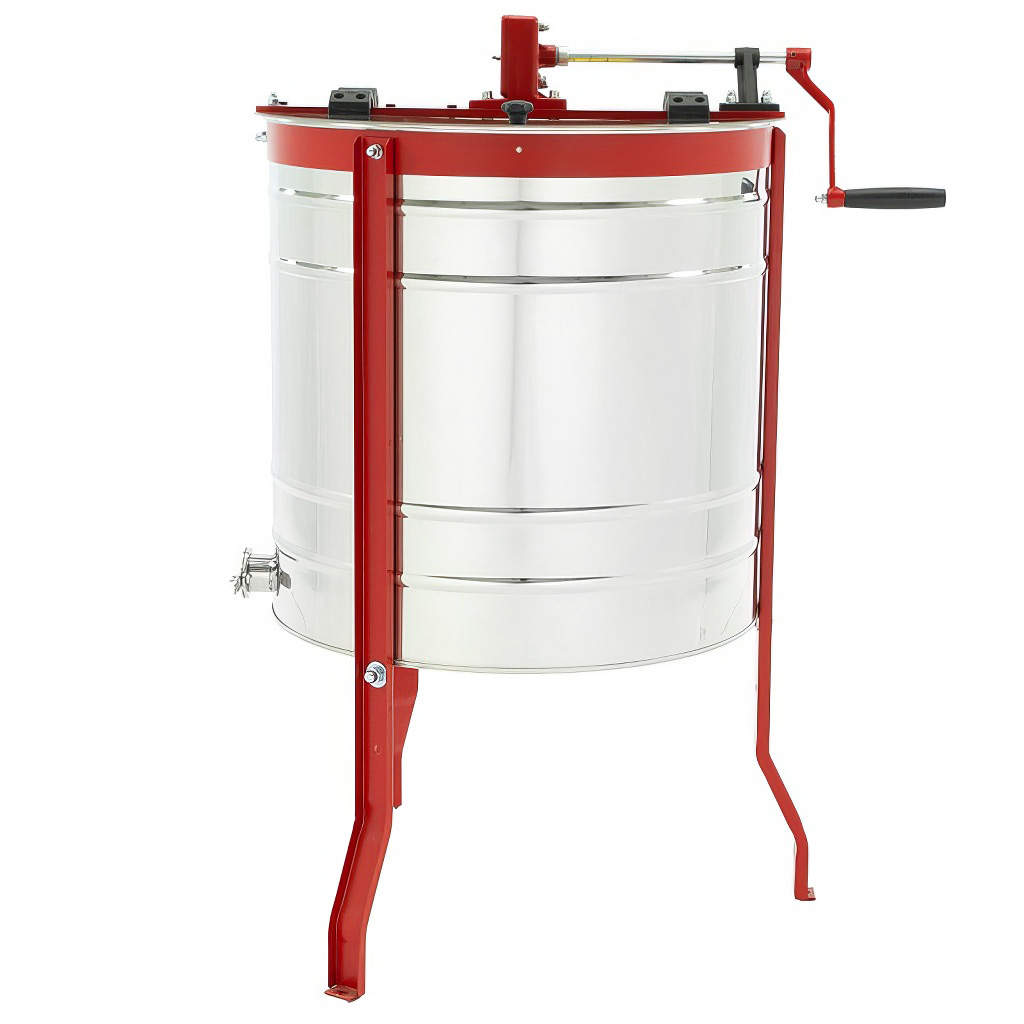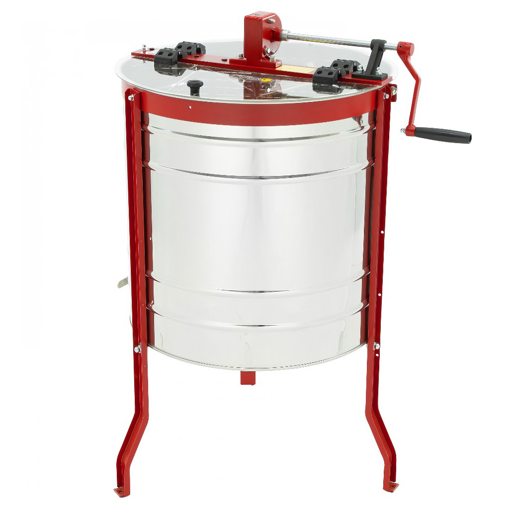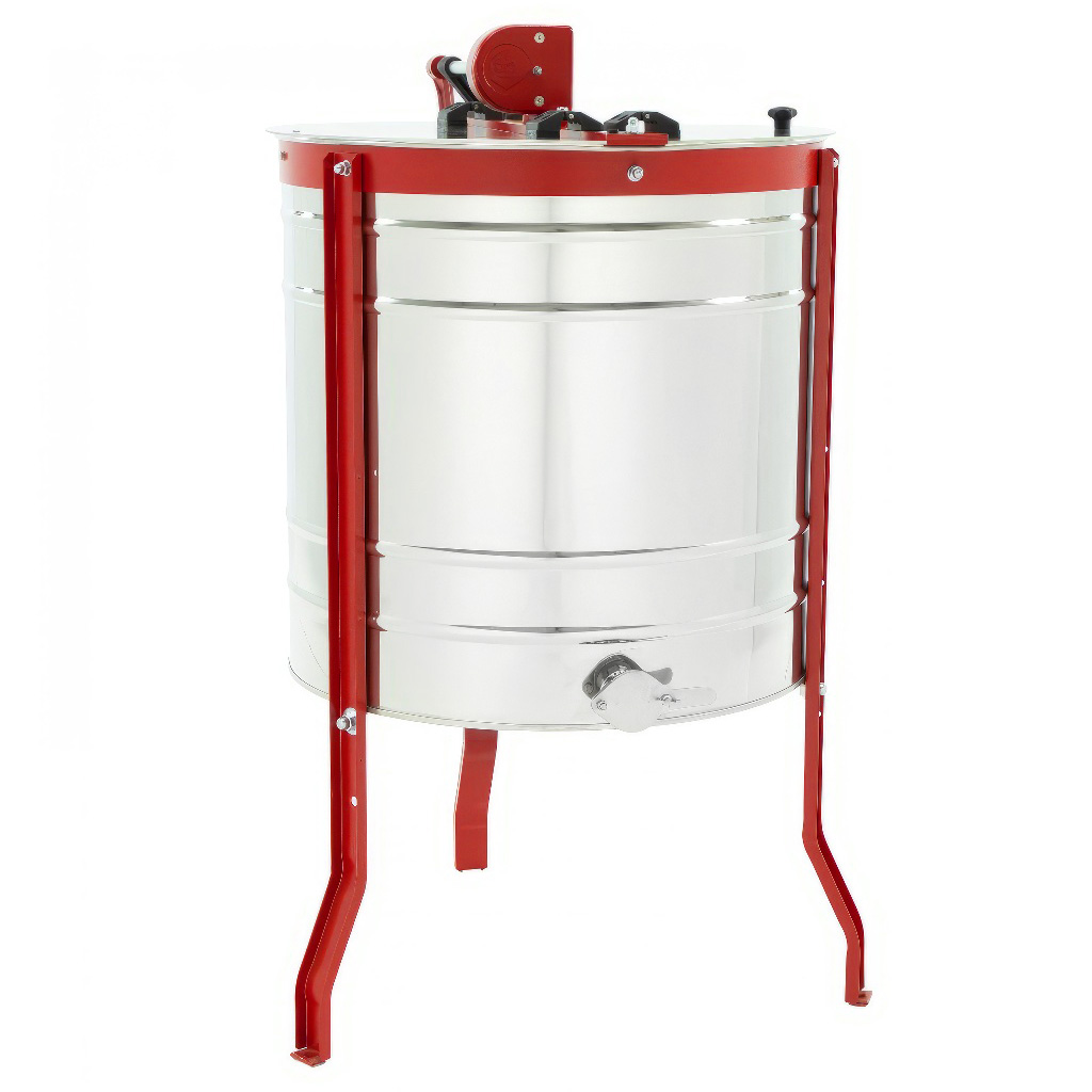Medomet tangenciální nerezový pro čtyř rámky. Tento včelařský medomet je vybaven ručním pohonem, což zajišťuje jednoduchou a efektivní manipulaci. Rozměry koše jsou 35 x 45 cm. Čtyř rámkový medomet má průměr nádoby přibližně 61 cm. Celková výška medometu, včetně kovového podstavce, dosahuje přibližně 100 cm, přičemž výška od kohoutu k zemi je přibližně 40 cm. Medomety mají plnou 2 letou záruku, což zaručuje jejich kvalitu a spolehlivost. Nabízíme našim zákazníkům kompletní záruční i pozáruční servis, včetně možnosti výměny a dodávky náhradních dílů. Medomety splňují evropské standardy jakosti a bezpečnosti a jsou certifikovány certifikátem CE. Záruka 24 měsíců. Všechny části medometu, které přicházejí do styku s medem, jsou vyrobeny z nerezové oceli, což zajišťuje hygienu a dlouhou životnost. Medomet má manuální pohon na kliku, což umožňuje snadnou a efektivní práci. Nový medomet je neocenitelnou pomůckou pro každého včelaře. Medomety jsou vyrobeny v EU.